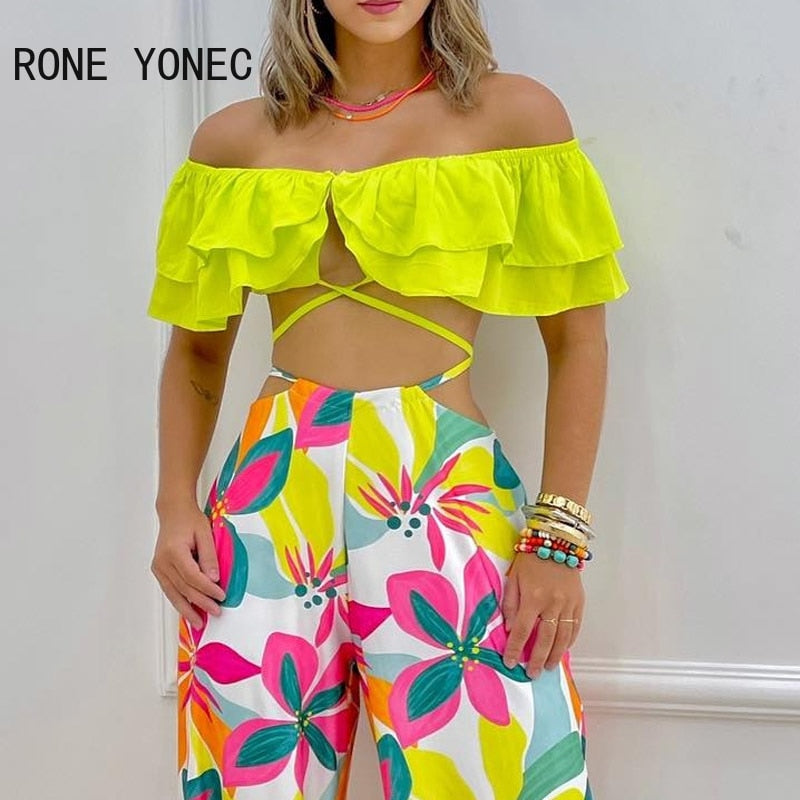 Spaghetti Strap Top/ Floral Print Pants Set